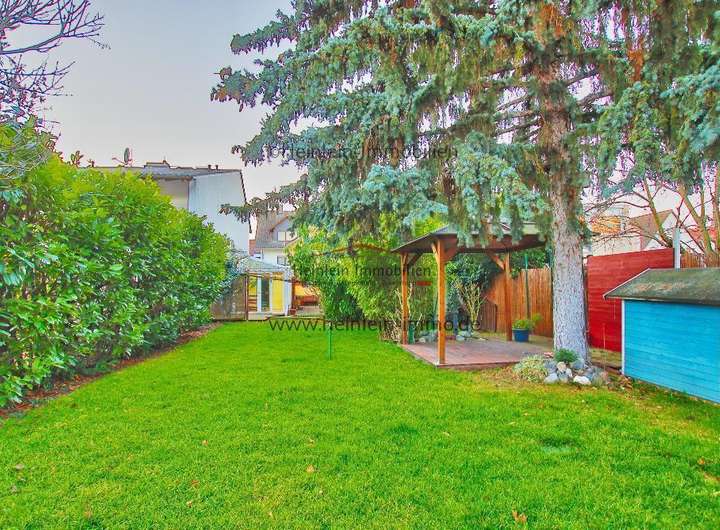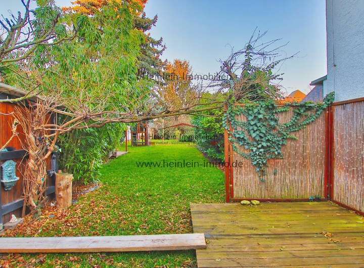 Der Gartenbereich mit einer Hand voll Obstgewächsen und altem Baumbestand der Teile des Gartens im Sommer angenehm kühlt. Schaukel, Spielturm, eine Ruheecke mit Holzterrasse laden zur Wiederherstellung der Work-Life Balance ein.