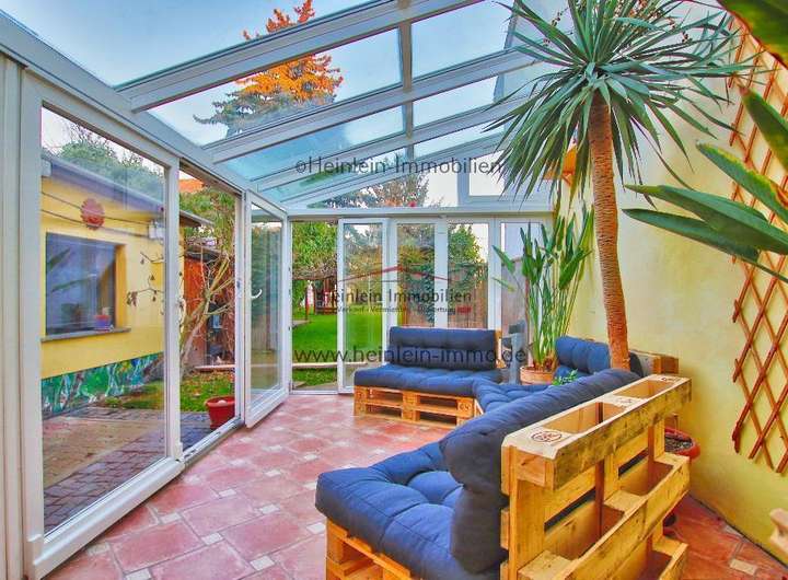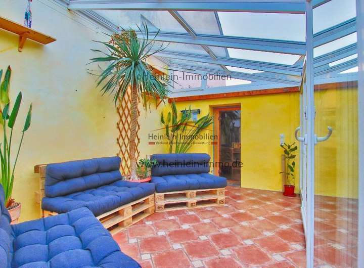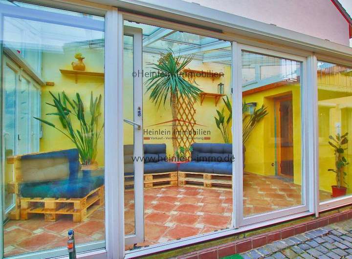 Vis avis des EG-Jugendzimmers (bzw. hinter der Garage) befindet sich im Aussenbereich ein Wintergarten (mit Fußbodenheizung - über Gas-Zentralheizung des Hauses) der ganzjährig genutzt werden kann. Die beschriebene Sauna ist über den Wintergarten zu erreichen. Eine kleine Terrasse ist ebenfalls vorhanden.