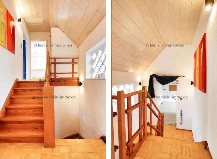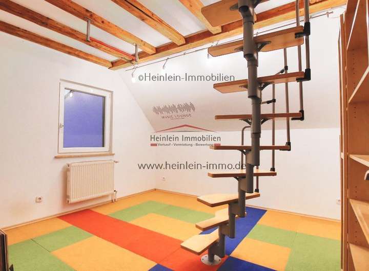 Linksseitig befindet sich das 2.DG-Zimmer, ebenfalls ein Kinder- oder Arbeitszimmer. Mit einer sog. Raumspartreppe gelangt man in den ausgebauten Dachspitz. Dieser wurde in liebevoller Kleinstarbeit gestaltet und ausgebaut - der perfekte Rückzugsort zum lesen, schreiben oder einfach zum spielen.