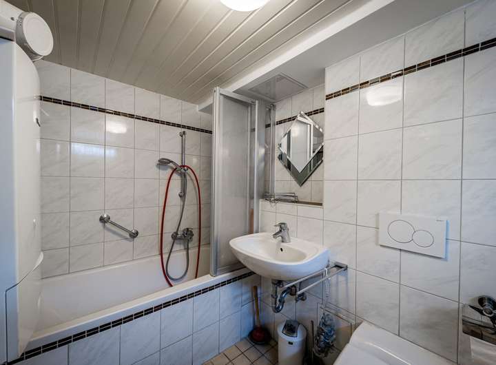 Im Obergeschoss befinden sich ein helles Tageslicht-Duschbad, ein ruhiges Schlafzimmer sowie ein weiteres, kleineres Zimmer – ideal als Kinder-, Arbeits- oder Gästezimmer.