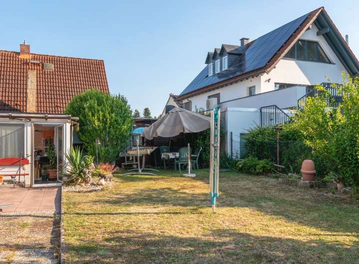 Der Garten? Ein echtes Familienparadies mit über 700 m² Grundstücksfläche. Hier ist Platz für Gemüsebeete, Fußballtore, Planschbecken und Grillabende.