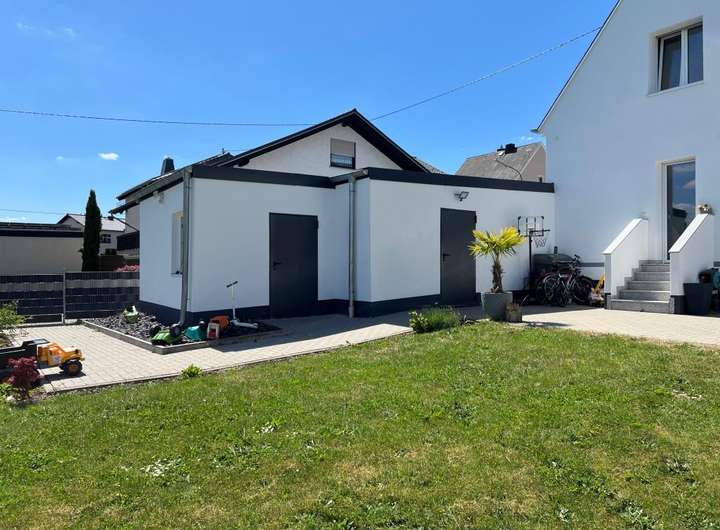 Auf dem weitläufigen Grundstück befinden sich außerdem eine Garage mit angrenzendem Gerätehaus sowie ein großer Garten, der vielfältige Nutzungsmöglichkeiten bietet und das Gesamtbild der Immobilie harmonisch abrundet.