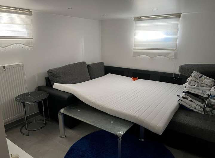Das vollständig unterkellerte Gebäude erweitert das Nutzungspotenzial um ca. 46 m². Hier stehen ein Raum mit Kochnische und innenliegendem Bad, ein Gäste-WC, ein Heiz- und Waschraum, ein separater Büroraum sowie eigene Abstellräume für die Mieter zur Verfügung. Besonders praktisch ist der separate Zugang von außen, der den Keller unabhängig vom Hausinneren erreichbar macht und zusätzliche Flexibilität bei der Nutzung bietet. Ergänzt wird das untere Geschoss durch einen gemeinschaftlich nutzbaren Wasch- und Trockenbereich.