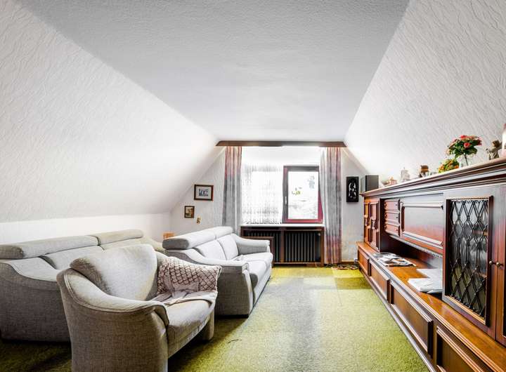 Das Gebäude befindet sich in sanierungsbedürftigem Zustand. Von außen wirkt es gepflegt und fügt sich harmonisch in eine gewachsene Nachbarschaft aus Einfamilienhäusern ein. Die Lage in einer reinen Stichstraße sorgt für ein besonders ruhiges Wohnumfeld.