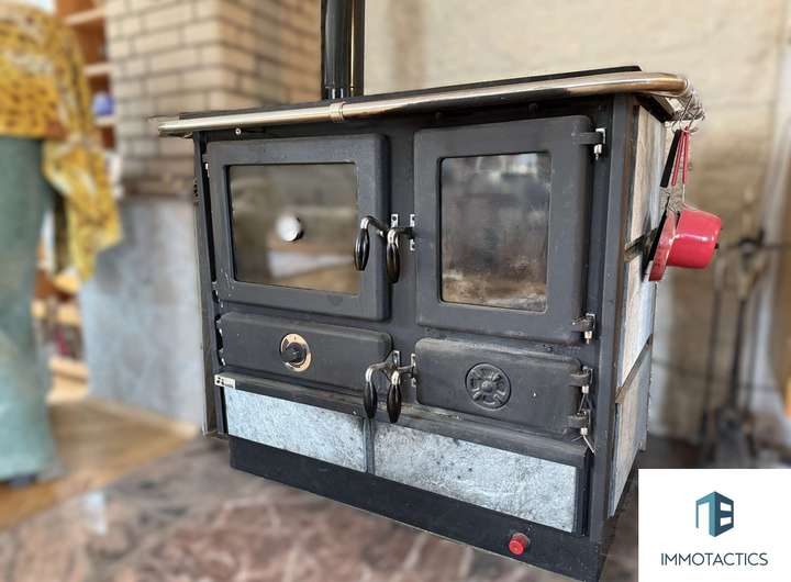 Das Herzstück bildet der großzügige Wohnbereich mit offen gestalteter Küche. Große Fenster und der Blick in den Garten schaffen eine angenehme, freundliche Atmosphäre. Der wasserführende Kaminofen sorgt nicht nur für angenehme Wärme, sondern versorgt zugleich die Heizkörper mit warmem Wasser. Zusätzlich stehen eine Solaranlage mit Speicher sowie eine Klimaanlage mit Heizfunktion zur Verfügung – ein Plus an Komfort.