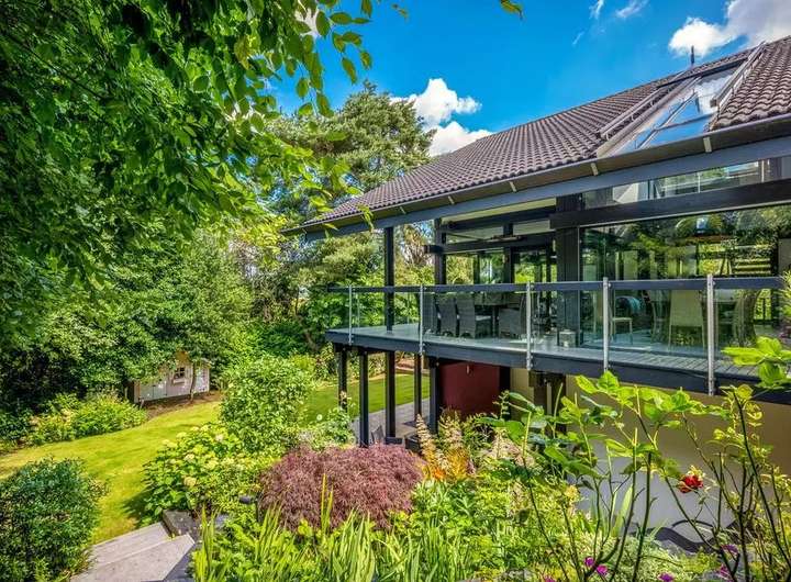 Die großzügigen Glasflächen schaffen eine harmonische Verbindung zwischen Innen- und Außenbereich.