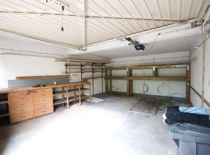 Eine große Doppelgarage bietet Platz für Fahrzeuge, Räder, Werkzeug oder Werkbank und erhöht den praktischen Nutzwert erheblich.