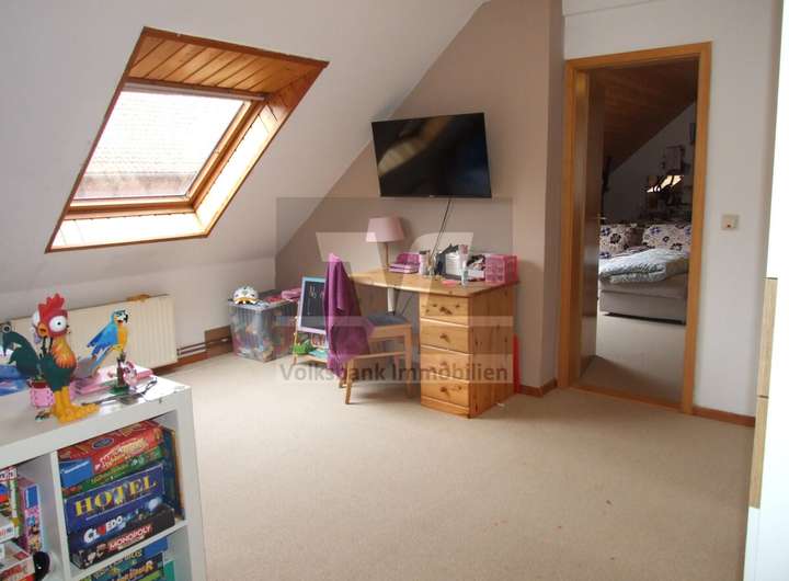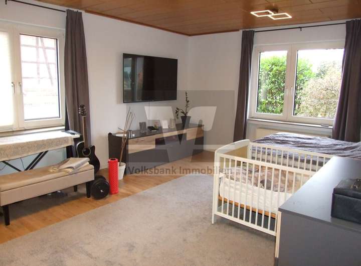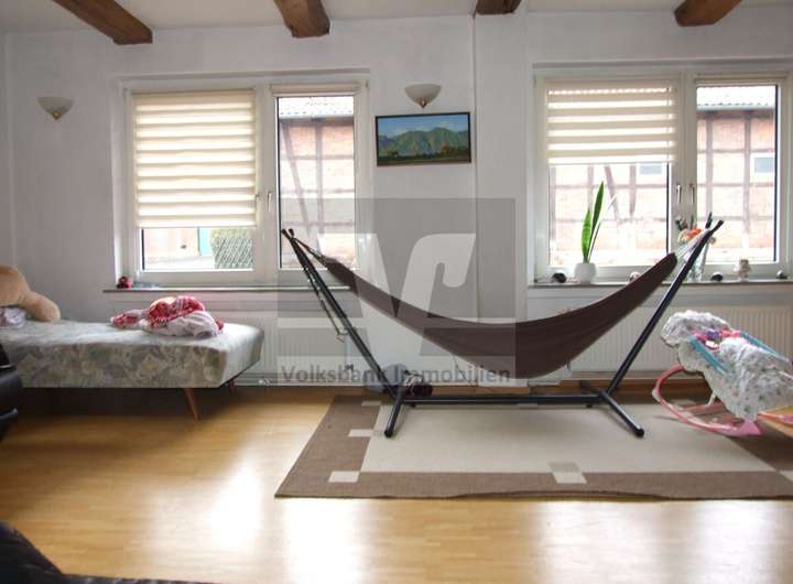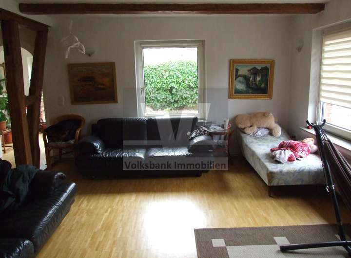 Dieses große Wohnhaus mit seinen zwei abgeschlossenen Wohneinheiten eignet sich zur Eigennutzung und/oder Kapitalanlage. Neben dem Wohnhaus befinden sich auf dem sehr großen Grundstück noch eine Garage sowie ein Nebengebäude mit zwei Abstellräumen. Die Grunderneuerung des ursprünglichen Fachwerkgebäudes (Bj. ca. 1800) erfolgte in den Jahren 1967 – 1969. Der Ausbau des Dachgeschosses folgte in den Jahren 1990 – 1991.