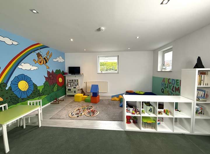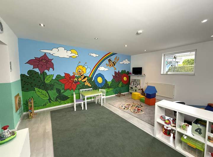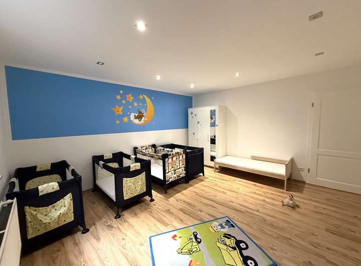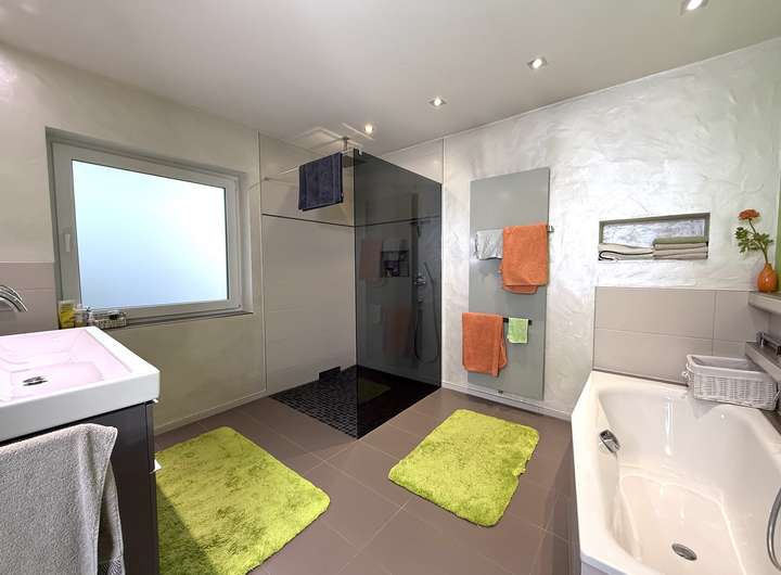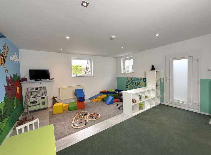 Der umfangreich ausgebaute Untergeschossbereich ist über eine interne Treppe direkt angebunden und bietet weitere vollwertige Räume, ideal für Arbeitsbereiche, Gäste, Fitness, Hobby oder Jugendzimmer.