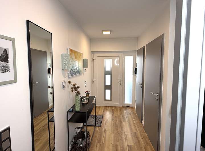 Zum Verkauf steht die komplette Erdgeschossebene inklusive des ausgebauten Untergeschosses vollständig abgeschlossen, mit separaten Eingängen und einem Wohngefühl, das dem eines Einfamilienhauses sehr nahekommt.