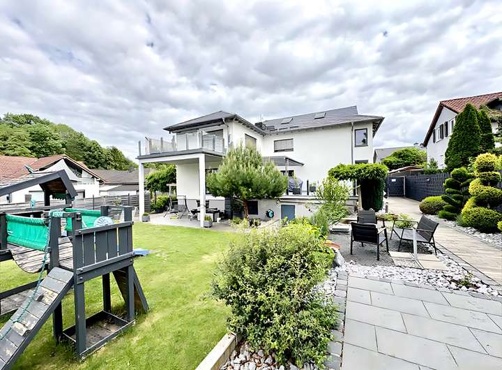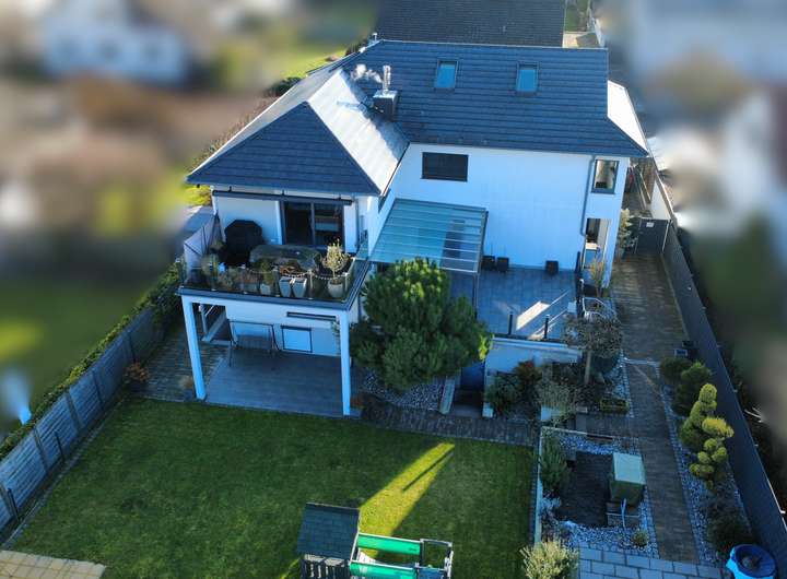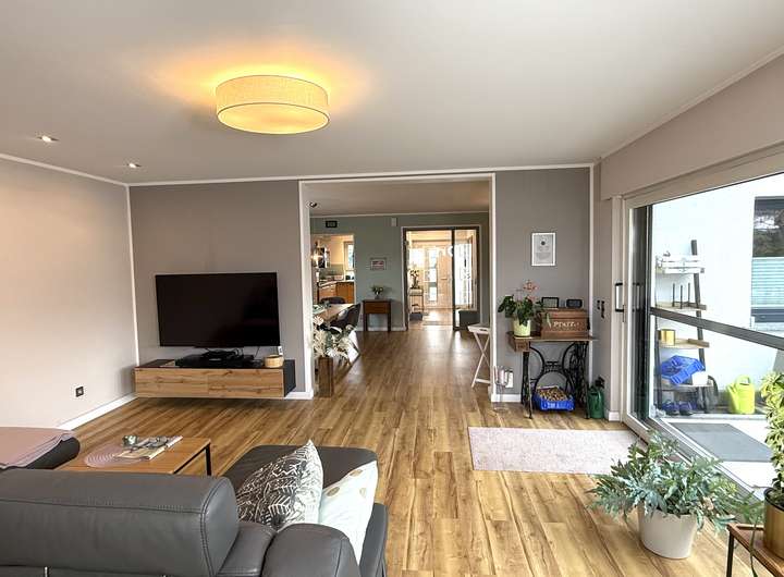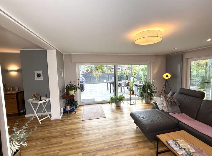 Ehemaliger Bungalow, modern erweitert – großzügige EG/UG-Einheit mit eigenem Garten und Garage