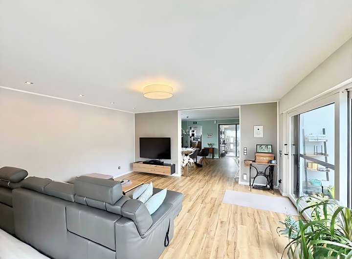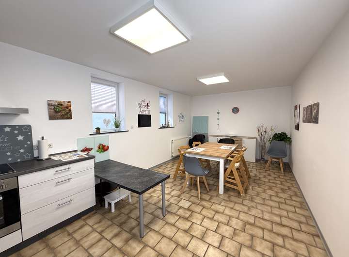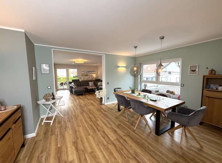 Die Einheit umfasst ca. 215 m² Wohnfläche und bietet viel Platz für Familie, Homeoffice, Hobbys und Gäste. Der Wohn- und Essbereich im Erdgeschoss überzeugt mit großen Fensterflächen, die für viel Licht sorgen und den Raum offen und freundlich wirken lassen. Die moderne Einbauküche fügt sich harmonisch ein und bildet den funktionalen Mittelpunkt des Alltags.