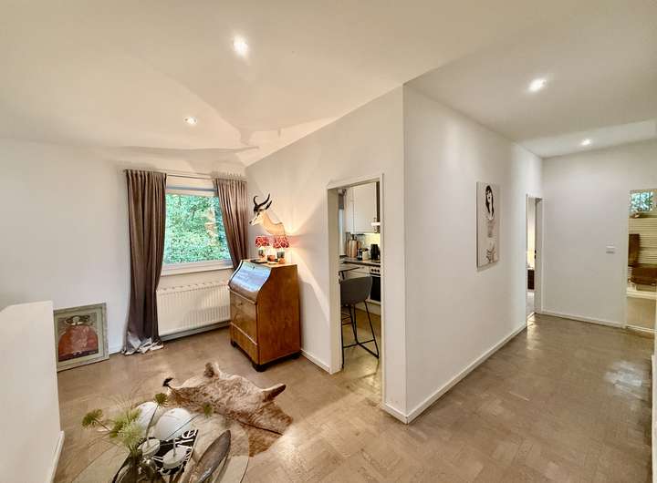 Der helle, großzügige Flur bildet das Herzstück des Hauses. Von hier aus sind alle Wohnräume sowie die Treppe ins Untergeschoss bequem erreichbar. Die Offenheit des Grundrisses bietet vielfältige Gestaltungsmöglichkeiten – ideal für individuelle Wohnideen.