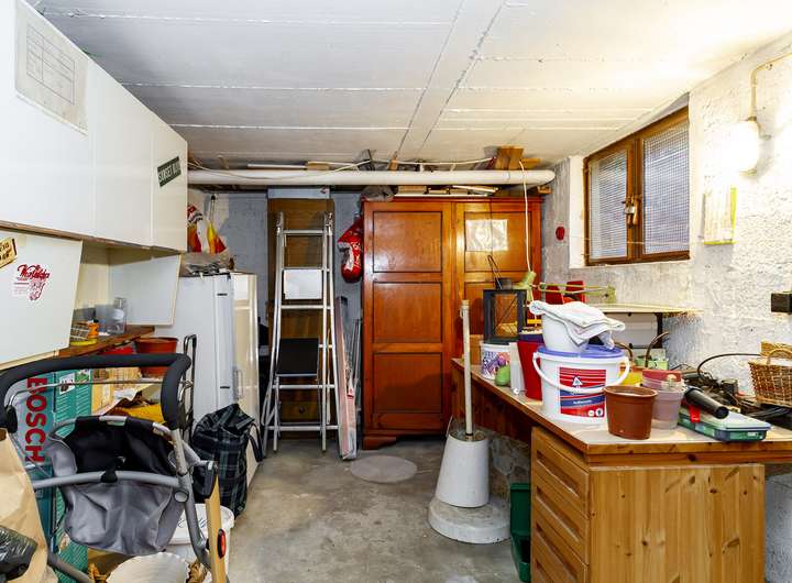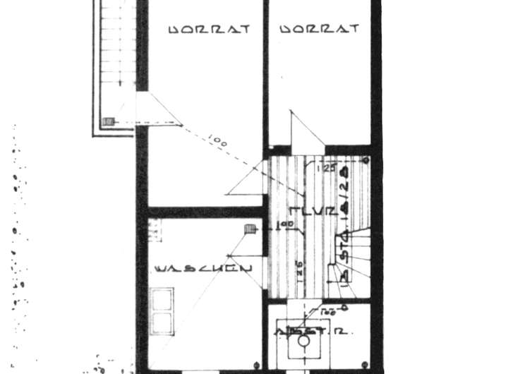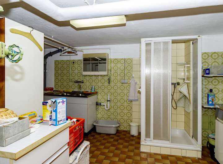 KG: Waschküche mit Dusche + Heizung, 2 Vorratsräume, Abstellraum, Flur, Außentreppe