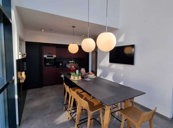 Zentraler Punkt des Hauses: die offene Treppe. Die Aufteilung in der oberen Etage bietet individuelle Nutzungsmöglichkeiten: Kinder, Büro, Hobby oder Gäste? Alles ist möglich! Der Balkon und das Schlafzimmer mit Ankleide und eigenem Bad runden das Angebot ab. Wer hier wohnt, lebt frei und unbeschwert.