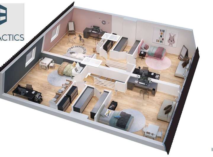Drei weitere Zimmer (z. B. Kinder-, Arbeits- oder Gästezimmer)