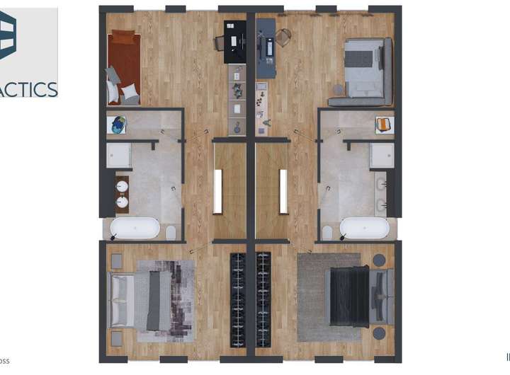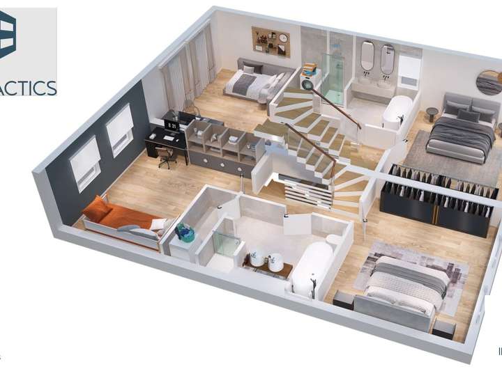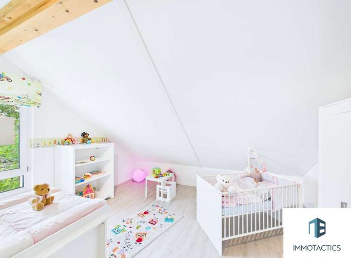 Das Dachgeschoss erweitert das Haus um zwei weitere, flexibel nutzbare Räume, die sich beispielsweise als zusätzliche Kinderzimmer, Gästezimmer oder ruhige Räumlichkeiten für ein Homeoffice eignen. Auf dieser Etage steht ein weiterer Abstellraum sowie ein Technikraum zur Verfügung, die zusätzlichen Stauraum bieten. Des Weiteren ermöglicht eine Bodentreppe den Zugang zum Spitzboden, der als zusätzliche Lagerfläche genutzt werden kann. Diese Integration ist sowohl funktional als auch platzsparend.