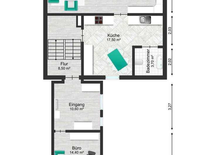 Zur Unterstützung bei Text- und Bildgestaltung, z. B. um die Nutzungsmöglichkeiten der Immobilie zu veranschaulichen, verwenden wir teilweise KI-Systeme. Alle Angaben und Darstellungen werden von uns manuell überprüft.
