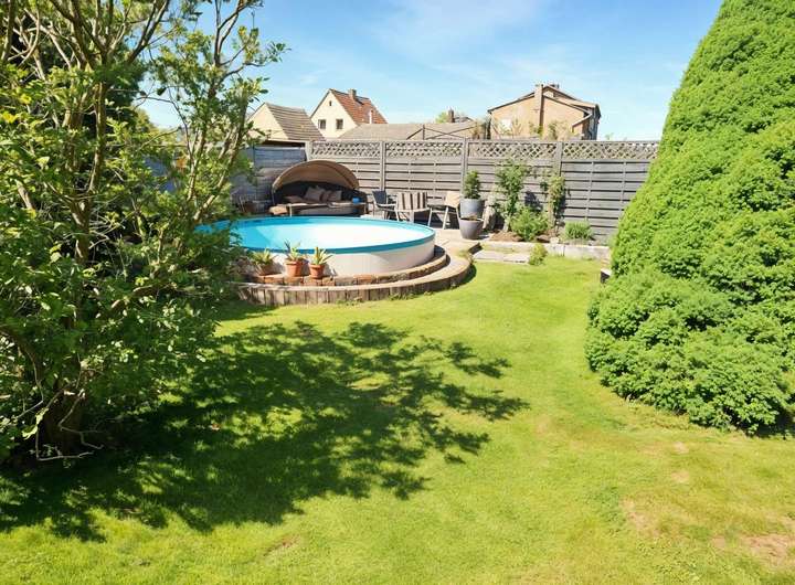 Das Haus steht auf einem 550 m² großen Grundstück, von dem 200 m² als Gartenfläche genutzt werden können. Hier können Sie entspannen, grillen oder einfach die Natur genießen. Die Immobilie erstreckt sich über 2 Etagen und wurde zuletzt 2018 modernisiert. In dem Jahr wurde das Dach samt Dämmung erneuert.