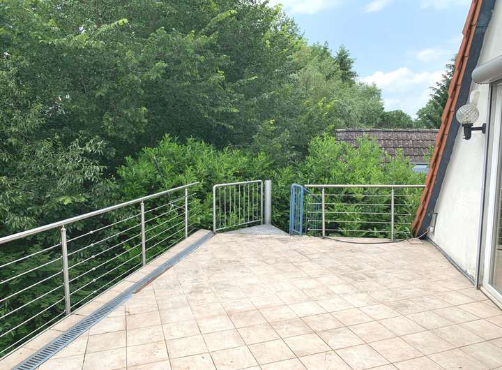 Weiter über das Treppenhaus gelangen Sie in das Dachgeschoss des Hauses. Dieses wurde zu vollwertigem Wohnraum ausgebaut und bietet zwei große Zimmer, wovon eines über direkten Zugang zur großen Dachterrasse verfügt. Auf die Dachterrasse gelangen Sie auch über eine zusätzliche Außen-Wendeltreppe vom Erdgeschoss aus. Eine weitere Schlafebene könnte zusätzlich im Dachraum realisiert werden.