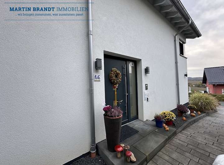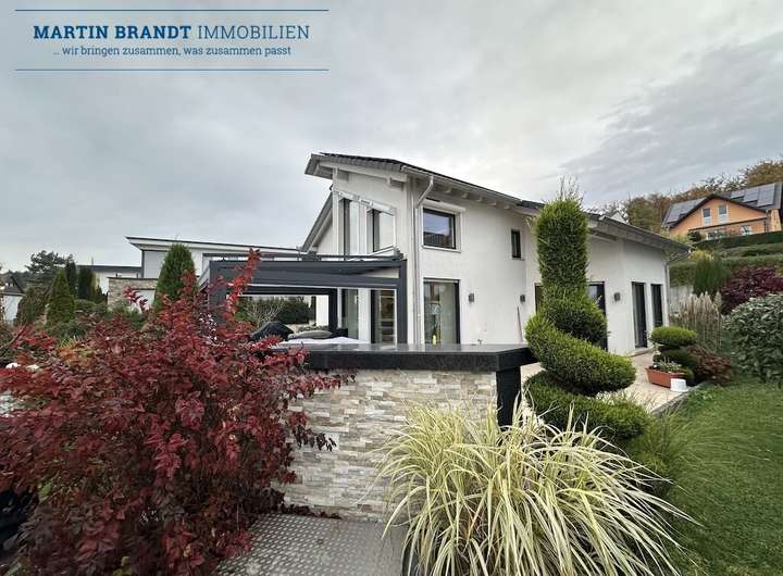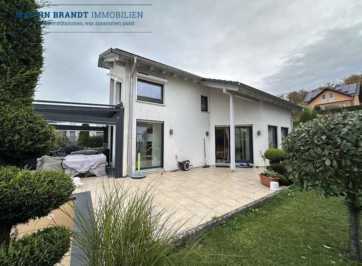 Zum Verkauf steht ein beeindruckendes freistehendes Einfamilienhaus der Firma Bien-Zenker in der charmanten Gemeinde Hünstetten, Ortsteil Oberlibbach. Diese exklusive Immobilie aus dem Jahr 2012 (Fertigstellung) begeistert mit einer nachhaltigen Fertigteilbauweise im Niedrigenergiehaus-Standard mit Solarunterstützung und einem gepflegten Zustand. Auf einem großzügigen Grundstück von ca. 566 m² bietet das Haus auf drei Etagen eine Wohnfläche von ca. 177 m² sowie eine zusätzliche Nutzfläche von ca. 57 m².