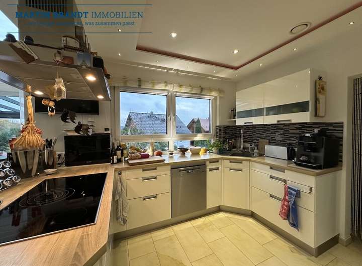 - Moderne Einbauküche mit Fernseher + Speisekammer