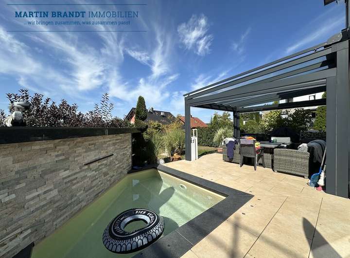 - große Terrasse (64 m²) , Wintergarten, 4-fach elektrische Markisen inkl. LED-Beleuchtung
