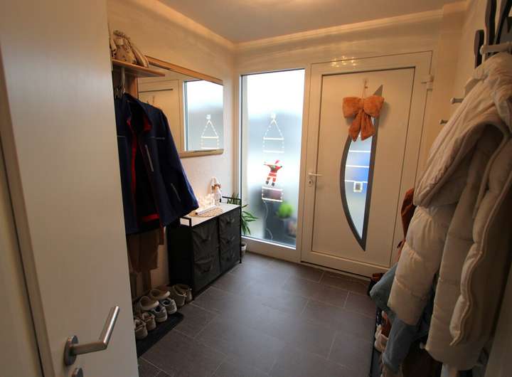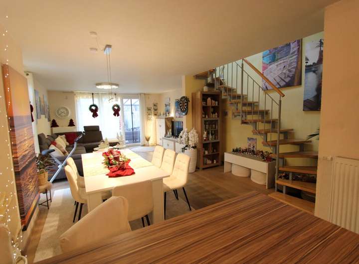 Diese charmante Doppelhaushälfte aus dem Jahr 2013 verbindet modernen Wohnkomfort mit einem behaglichen Zuhausegefühl. Auf 144 m² Wohnfläche eröffnet sich ein durchdachtes Raumkonzept, das Familien wie auch Paaren viel Platz und Flexibilität bietet. Bereits der großzügige Eingangsbereich vermittelt einen einladenden Eindruck und bietet genügend Raum für eine komfortable Garderobenlösung. Von hier aus gelangt man in das innenliegende Gäste-WC sowie weiter in den offenen Lebensmittelpunkt des Hauses. Die moderne Wohnküche fügt sich harmonisch in den lichtdurchfluteten Wohn- und Essbereich ein, der mit seinem offenen Charakter und dem direkten Zugang zur Terrasse ein angenehmes Wohnambiente schafft. Der liebevoll gestaltete Garten bietet viel Privatsphäre und lädt dazu ein, entspannte Stunden im Freien zu verbringen.