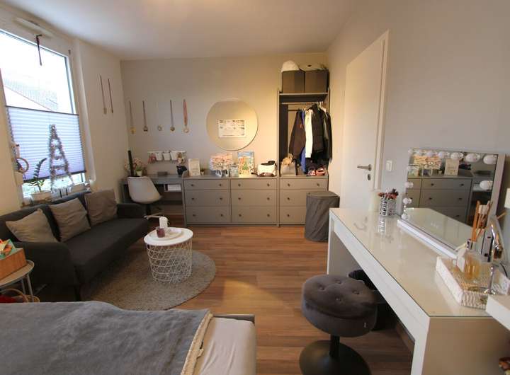 Das Haus befindet sich in einem ausgezeichneten Zustand, sodass keinerlei Renovierungs- oder Modernisierungsbedarf besteht. Im Garten steht eine große Gartenhütte mit viel Stauraum für Fahrräder und Gartengeräte zur Verfügung. Zwei PKW-Außenstellplätze direkt am Haus runden dieses attraktive Angebot ab.