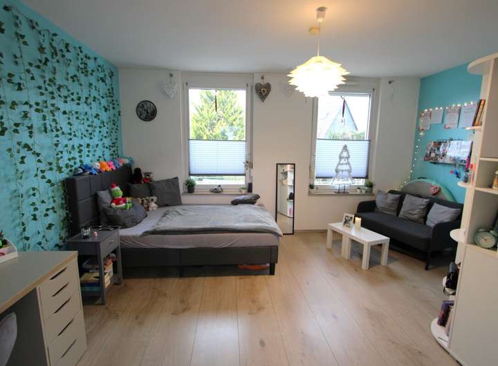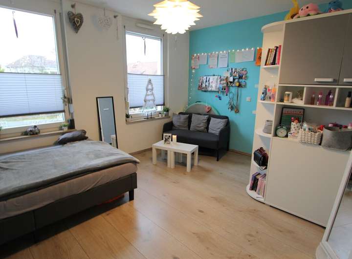 Im Obergeschoss erwarten Sie zwei sehr gut geschnittene Schlafzimmer sowie ein helles Tageslichtbad mit Badewanne und Dusche. Ein separater Hauswirtschaftsraum mit Waschmaschinenanschluss sorgt für zusätzliche Funktionalität. Das Dachgeschoss erweitert das Wohnangebot um zwei weitere großzügige Zimmer und ein zweites Tageslichtbad mit Dusche, wodurch sich vielfältige Nutzungsmöglichkeiten ergeben – ob als Kinderbereich, Gästezone oder Homeoffice.