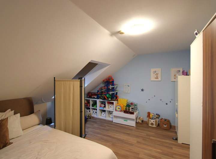 Der weitläufige Dachboden dient als idealer Kellerersatz und bietet großzügigen Stauraum für alles, was im Alltag nicht ständig griffbereit sein muss.
