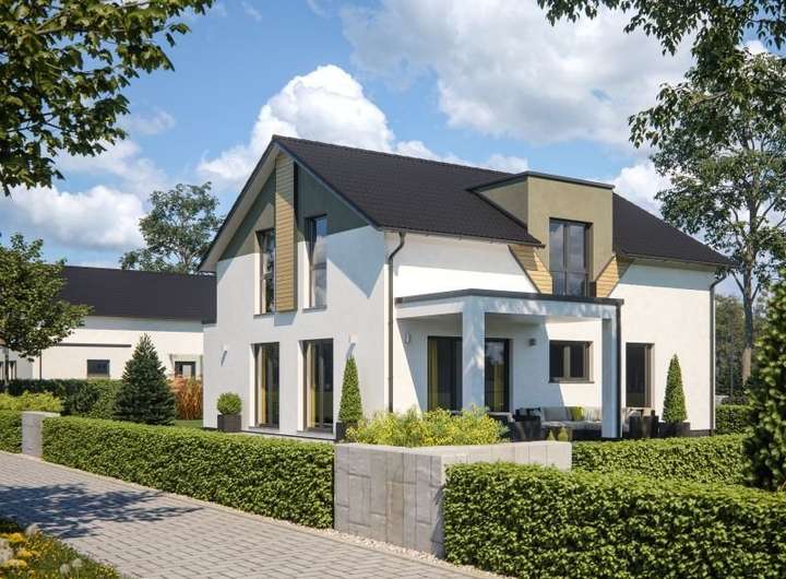 Dargestellte Anbauteile sind teilweise Sonderausstattung und optional gegen Aufpreis erhältlich. Nicht enthalten sind die üblichen Baunebenkosten (z. B. Hausanschlüsse, Außenanlagen, Genehmigungsgebühren) sowie die Kaufnebenkosten (Grunderwerbsteuer, Notar- und Grundbuchkosten).
