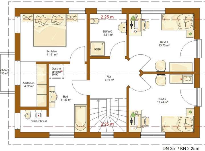 Das dargestellte Haus ist ein Vorschlag - bei RENSCH-HAUS planen wir grundsätzlich individuell, frei und flexibel, ganz nach Ihren Wünschen - wie beim Architekten. Die finale Ausführung erfolgt individuell und kann bei Bedarf noch an die Gegebenheiten des Grundstücks angepasst werden.