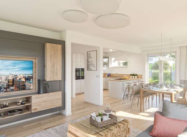 Dieses Einfamilienhaus vereint traditionellen Charme mit moderner Architektur. Hinter der klassischen Fassade verbirgt sich ein durchdachtes Raumkonzept mit zeitgemäßem Wohnkomfort. Kochen und Essen verschmelzen zu einem großzügigen, offenen Bereich - ideal für gemeinsames Familienleben. Der separate Wohnraum mit offener Treppe ins Dachgeschoss schafft eine gemütliche Rückzugsatmosphäre.