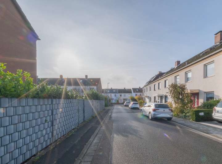 Zum Haus gehört eine Garage im nahegelegenen Garagenhof. Die Lage überzeugt durch ein gepflegtes Umfeld und kurze Wege zu Einkaufsmöglichkeiten, Schulen, Kindergärten und öffentlichen Verkehrsmitteln.