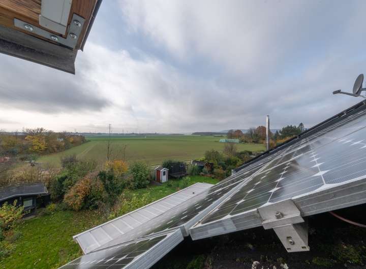 dem Dach installierte Photovoltaikanlage sorgt für nachhaltige