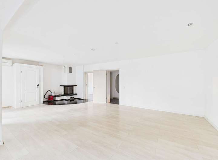 Im Erdgeschoss öffnet sich ein sehr großzügiger Wohn- und Essbereich, der durch seine offene Raumwirkung und große Fensterflächen besticht. Der moderne Kamin (2020) setzt einen stilvollen Akzent und sorgt für eine warme, einladende Atmosphäre. Das 1978 erweiterte Wohnzimmer beeindruckt zudem mit einer abgehängten Decke samt integriertem „Sternenhimmel“ und bietet direkten Zugang zur überdachten Terrasse sowie in den neu gestalteten Garten (2020).