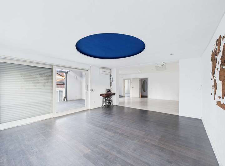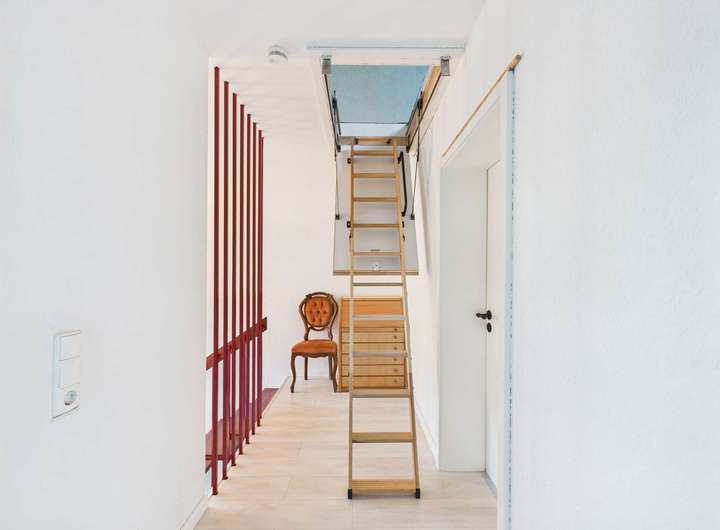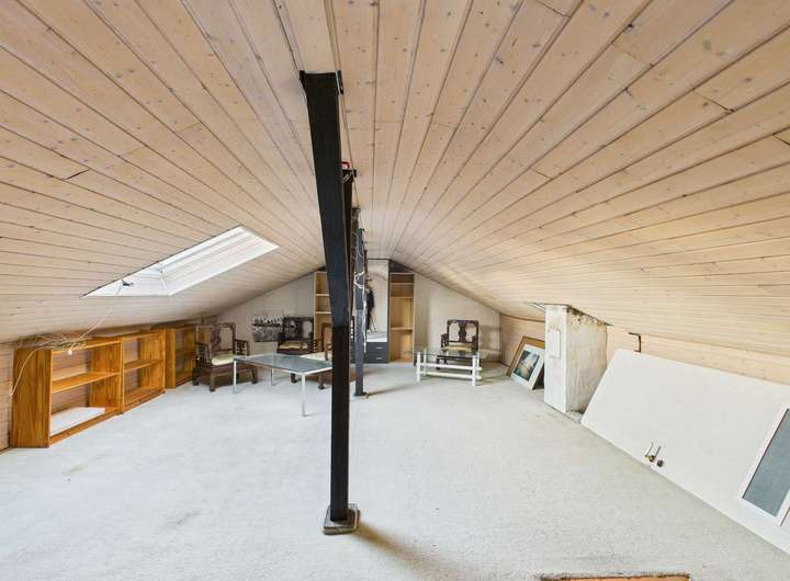 Das Obergeschoss umfasst drei Schlafzimmer sowie ein Tageslichtbad mit Dusche und Wanne. Zwei der Schlafzimmer führen direkt auf eine Dachterrasse/Loggia, die dank einer Dachöffnung charmante Sonnenanteile erhält – ein wunderbarer Ort für entspannte Abendstunden. Das darüberliegende ausgebaute Dachgeschoss eignet sich hervorragend als Büro, Hobbyraum oder zusätzlicher Rückzugsbereich.