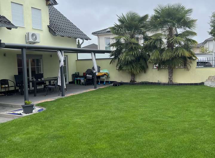 Fußbodenheizung, Klimaanlagen, Kaminofen, überdachte XXL-Terrasse, Rasenbewässerung, 4 Schlafzimmer, 2 komfortable Badezimmer, schön angelegter Gartenbereich, Rollläden, Doppelgarage,