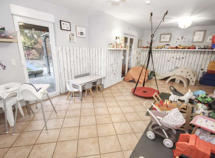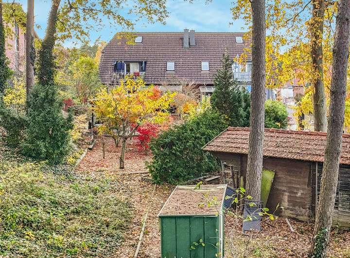Das großzügige Grundstück bietet verschiedene Nutzungsmöglichkeiten im Außenbereich. Im hinteren Bereich kann es dank des Baumbestandes natürlich gehalten werden und bleibt pflegeleicht.