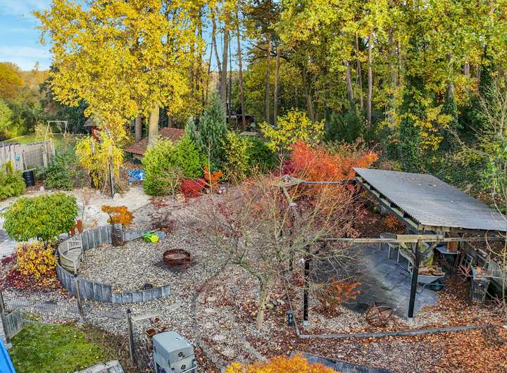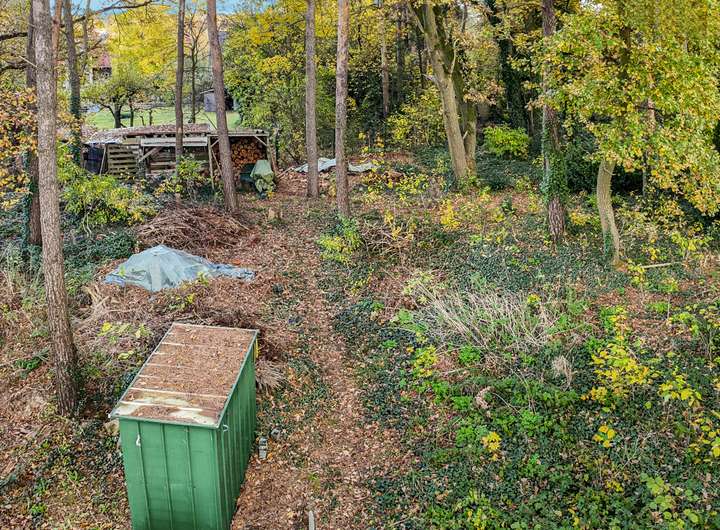 Das Grundstück verfügt über einen Bestand an Bäumen, einem kleinen Wald, Sträuchern sowie mehrere funktionale Sitzecken.