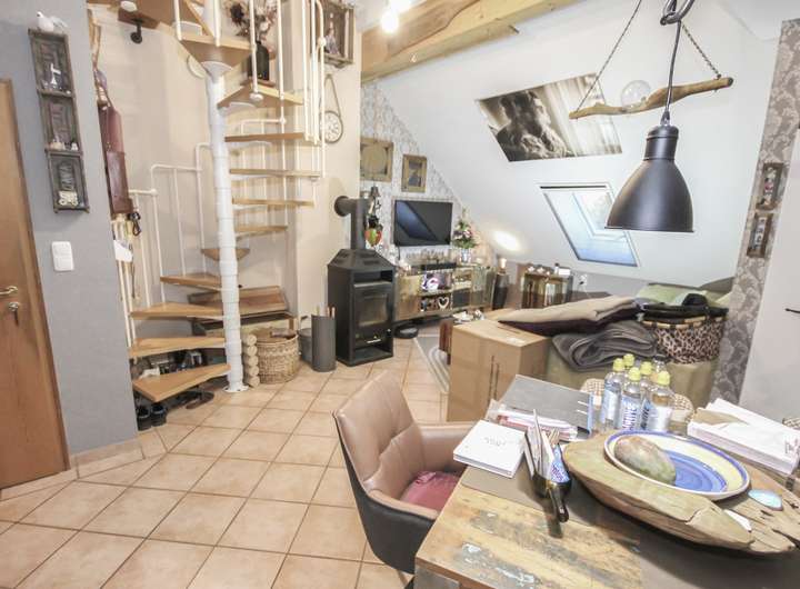 ca. 65 m² Wohnfläche, 2 Zimmer, Bad, Gäste-WC, Balkon zzgl. Studio im Dachgeschoss.