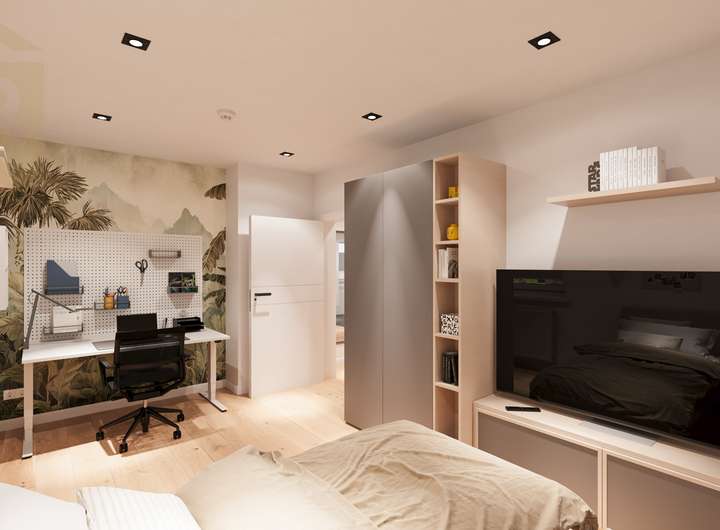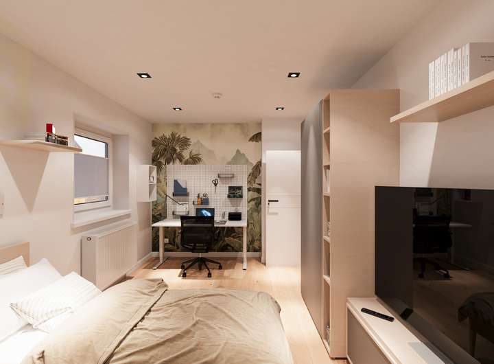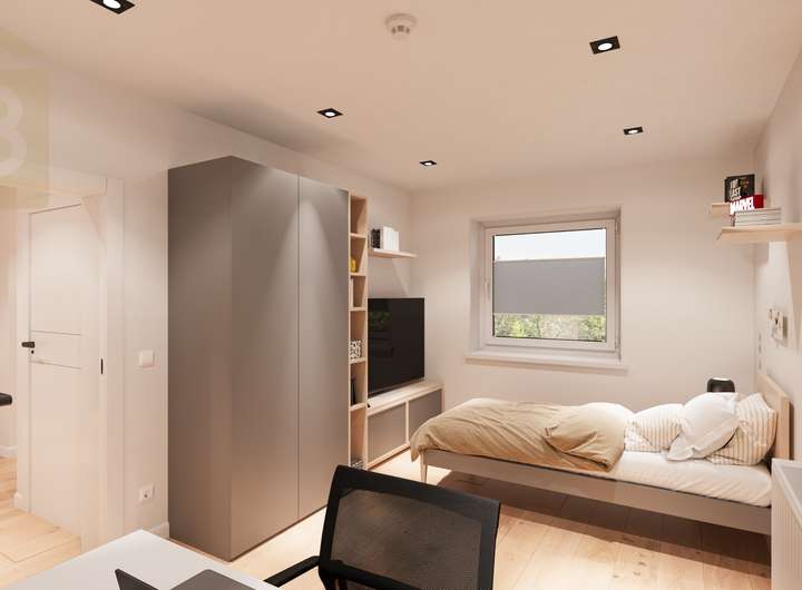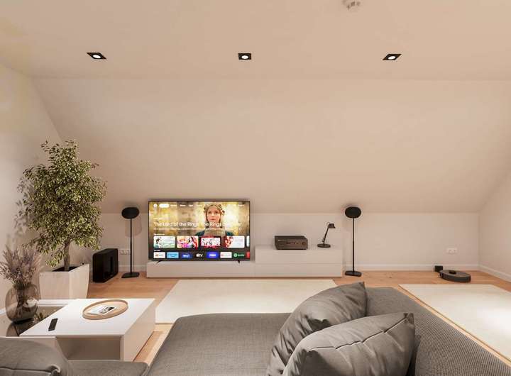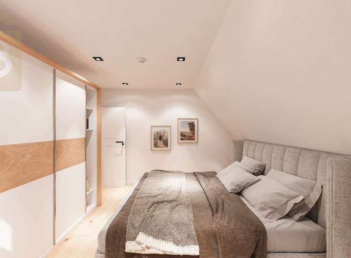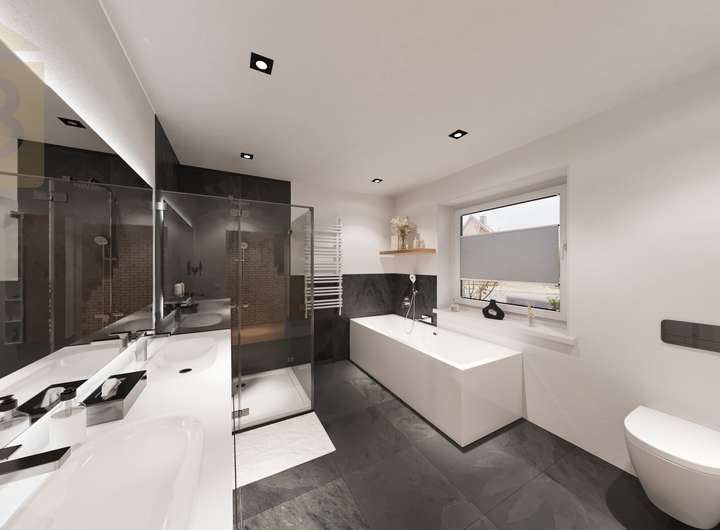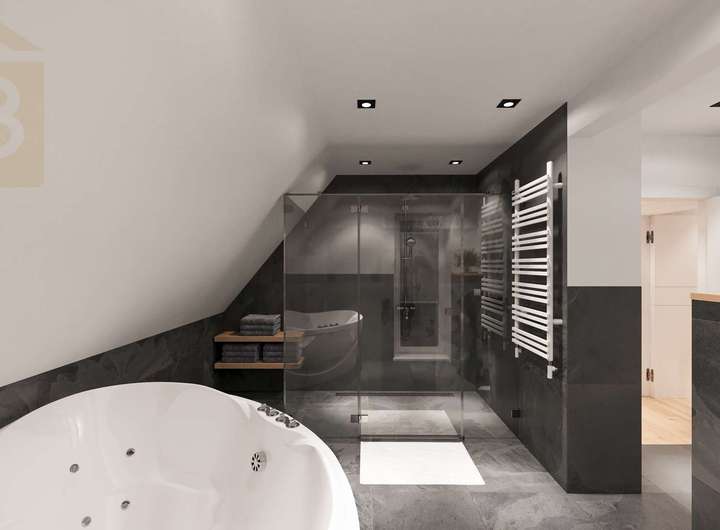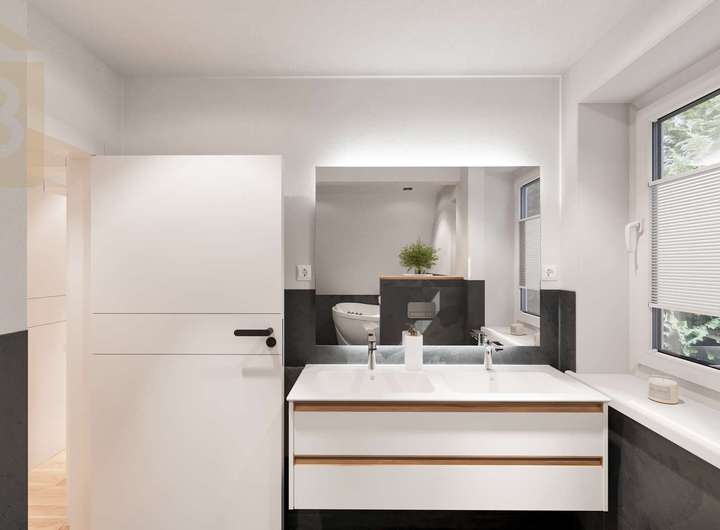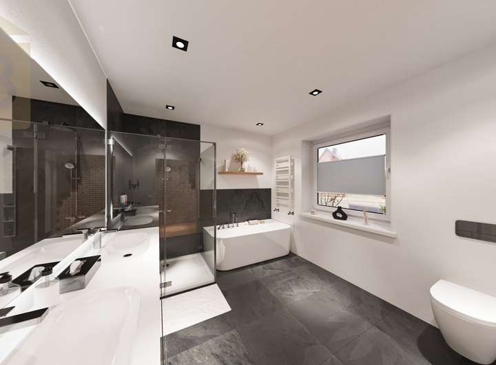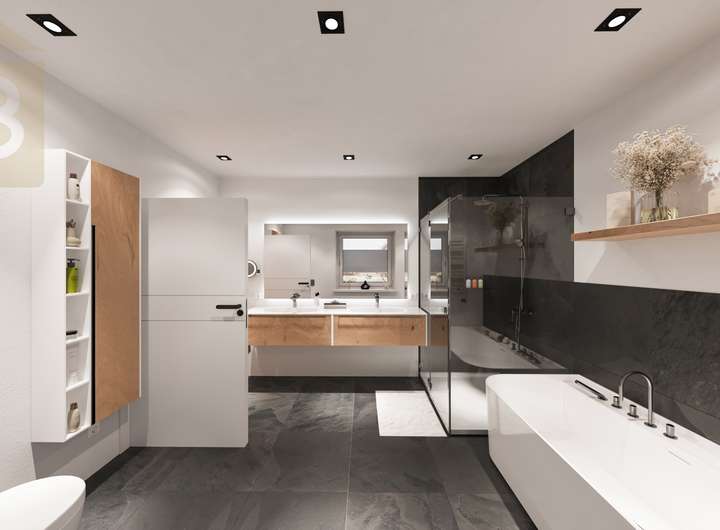 Das Dachgeschoss erweitert das Platzangebot um drei weitere Zimmer, die flexibel als Schlaf-, Hobby- oder Arbeitsräume genutzt werden können. Zusätzlich steht hier ein großes Badezimmer zur Verfügung, sodass auch im oberen Bereich hoher Wohnkomfort gewährleistet werden kann.