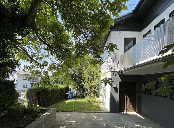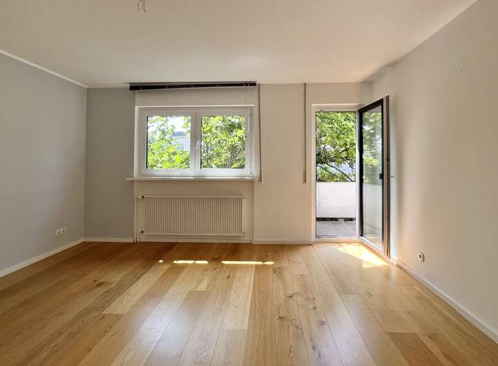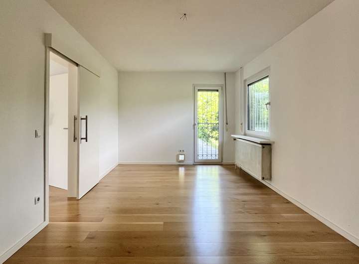 Zugang zum Balkon mit Süd-Ausrichtung (1/4 der Wohnfläche wird angerechnet) und der schönen Terrasse (1/3 der Wohnfläche angerechnet) mit angrenzendem Garten.