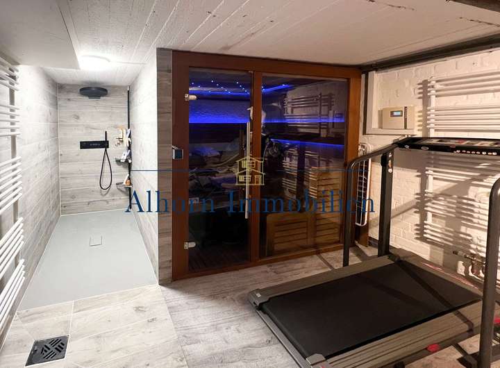 - Vollkeller mit teilverglaster Sauna, Dusche und Wellnessbereich