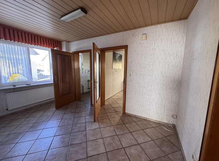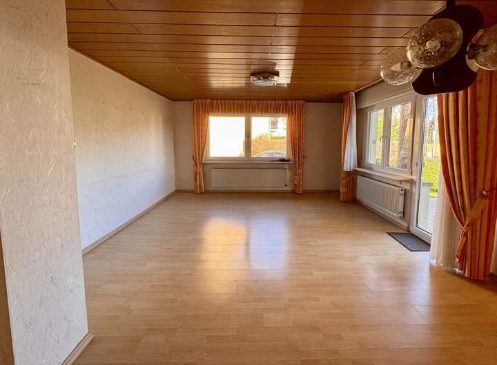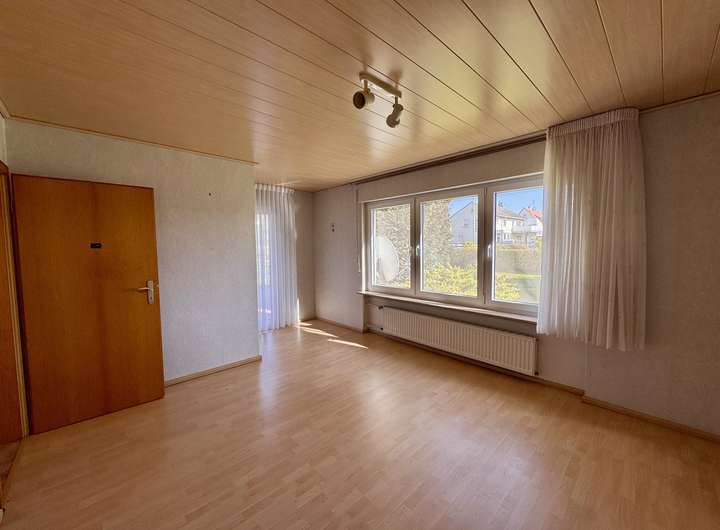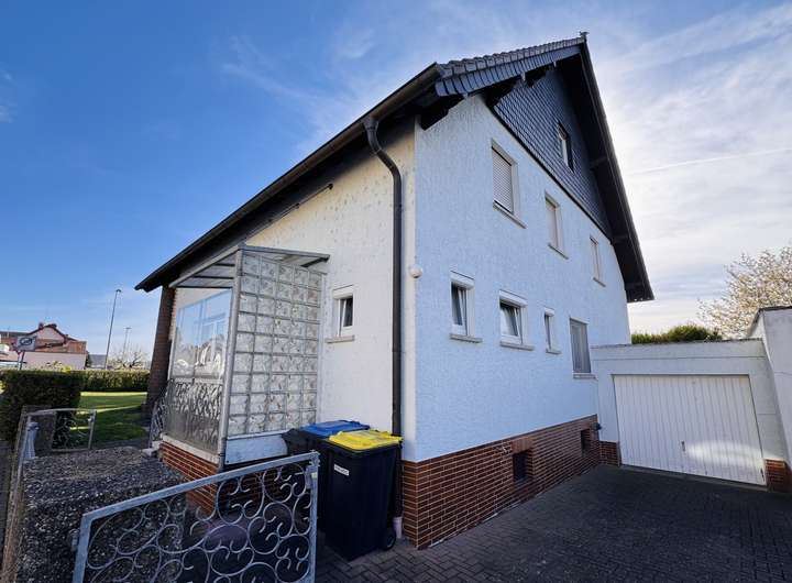 1963 erbaut und 1974 erweitert wurde dieses ursprünglich als Einfamilienhaus geplante Gebäude, welches zuletzt als Zweifamilienhaus genutzt wurde. Im Erdgeschoss befinden sich neben einem Gäste-WC, einer großen Diele, einer Wohnküche, dem großen Wohnzimmer mit Terrassenzugang und einem Badezimmer noch zwei weitere Zimmer. Im ersten Obergeschoss finden Sie neben zwei Schlafzimmern, je nach Bedarf ein weiteres Schlaf- oder Wohnzimmer, eine Wohnküche sowie ein weiteres Badezimmer. Ein gemütlicher Balkon ist gleich von zwei Zimmern aus begehbar.Das Gebäude ist komplett unterkellert. Das Untergeschoss kann beheizt werden und ist somit vielseitig nutzbar. Zudem bietet der nicht ausgebaute Dachboden/Spitzboden weiteren Stauraum. Vor der praktischen Garage befindet sich ein weiterer Stellplatz im Hof, somit stehen insgesamt zwei Stellplätze zur Verfügung. Der Energiebedarfsaufweis der Immobilie liegt vor. Durch energetische Sanierungsmaßnahmen - die sicher empfehlenswert sind - können Förderungen in Anspruch genommen werden und die Effizienz optimiert werden.