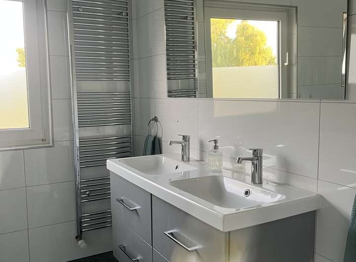 Der Grundriss ermöglicht bei Bedarf den Umbau in zwei separate Wohneinheiten – ideal für Mehrgenerationenwohnen oder zur Vermietung. In diesem Falle würde Ihnen 1 Schlafzimmer pro Etage zur Verfügung stehen – bitte die Bilder vom Grundriss vorab ansehen.