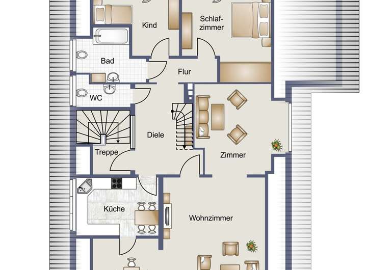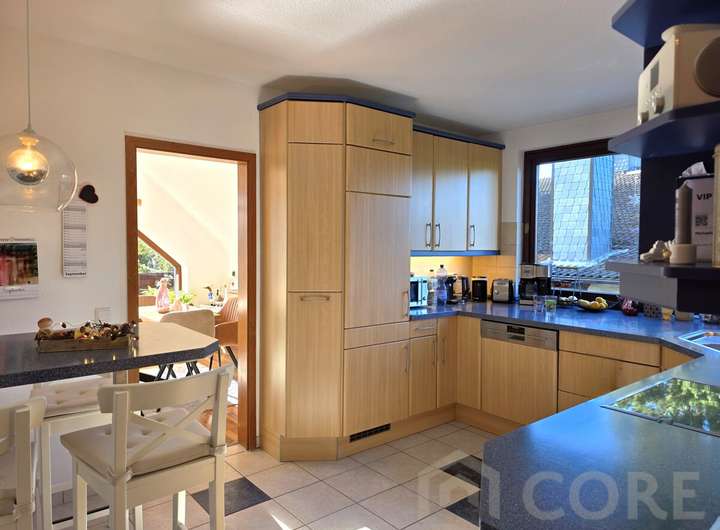 Der durchdachte Grundriss mit ca. 180 m² (inkl. ca. 35 m² Spitzboden) bietet 5 Zimmer, Küche, Diele, Vollbad und Gäste-WC. Der helle Balkon und die charmanten Schrägen schaffen eine besonders gemütliche Atmosphäre. Über die geschwungene Holztreppe gelangen Sie in den Spitzboden mit Schlafzimmer, begehbarem Kleiderschrank, Abstellraum und einer Empore zum Entspannen.
