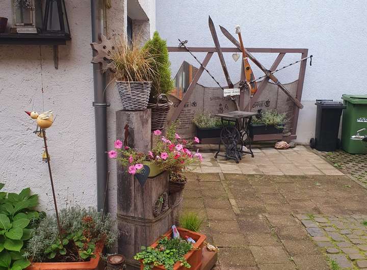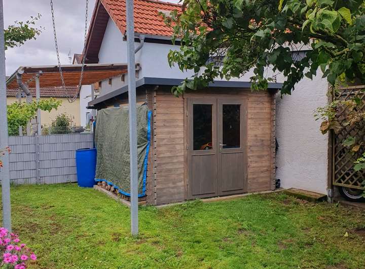 An der Garage befindet sich unter der Dachverlängerung noch ein Freisitz , der mit Infrarotheizstrahlern für gemütliche Abende ausgestattet wurde. Weiterhin wurde 2021 im Garten noch eine Holz-Gartenhütte für Fahrräder und Gartengeräte aufgestellt.