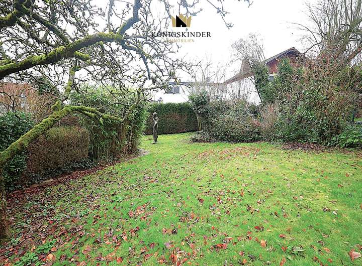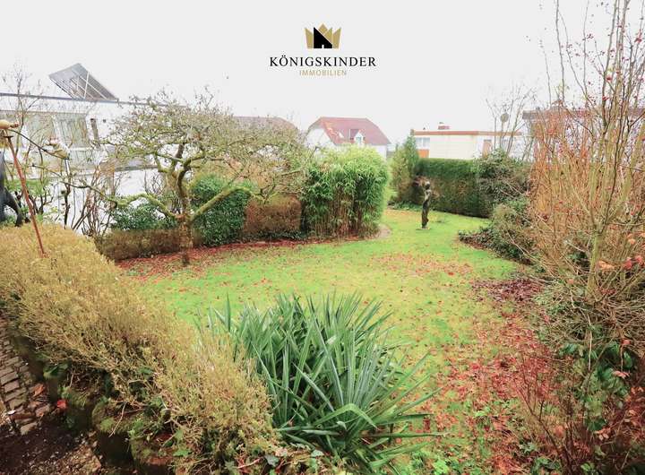 Der Garten ist hübsch angelegt mit Rasen, Sträuchern, Büschen und Bäumen. Der südliche Teil mit leichter Hangneigung hat einen direkten Ausgang zur Seitenstraße, der einladend angelegte Vorgarten bietet genügend Abstand zur Anliegerstraße und hat Platz vor der Garage für ein zweites Auto.